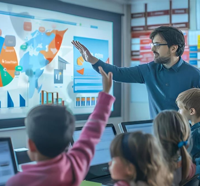 Aims to empower teachers to efficiently manage classrooms, add lessons and students, and present educational content in interactive and engaging ways through smart screens or projectors, enhancing student participation and supporting educational success